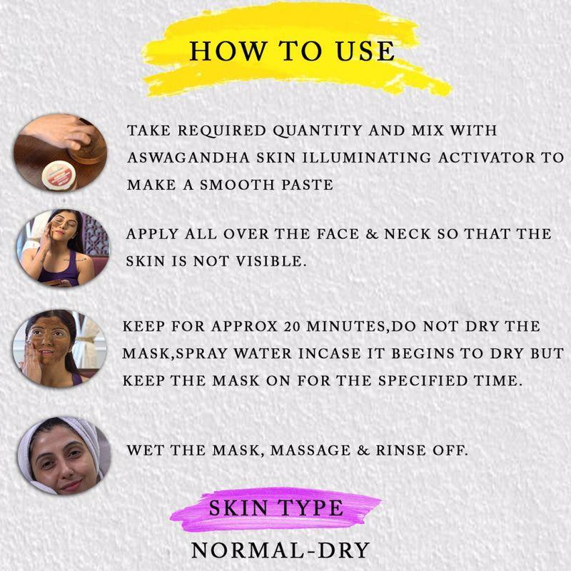 Mix Ubtan with Skin Activator: Take the required amount of Ashwagandha Skin Illuminating Ubtan and mix it with Skin Activator to form a smooth paste.