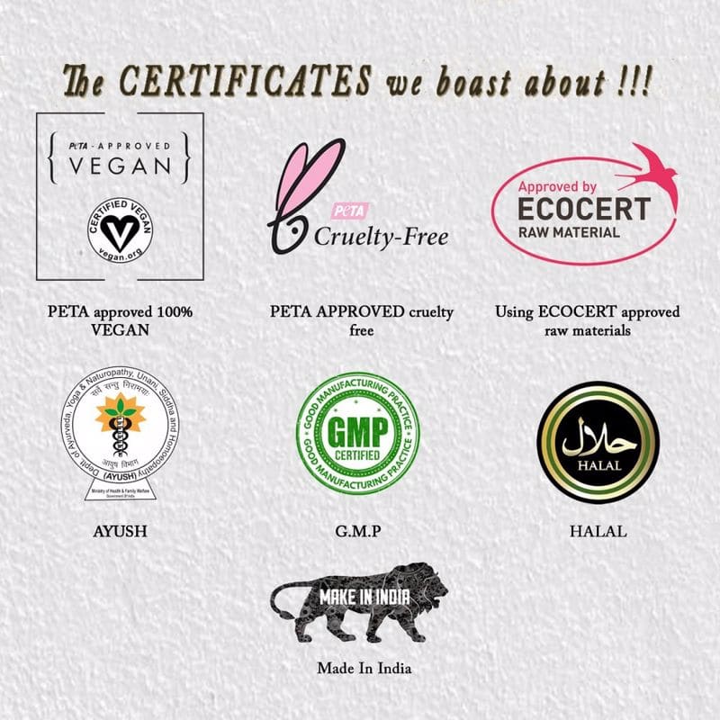 Centeella Asiatica (GOTU KOLA) (800mg,), Rosa Centifolia (GOLAP) (750mg.), Terminalia Belerica (BlBHITAK ) (725mg.), Azadirachta Indica (MARGOSA) (500mg.), Citrus Limonum (LEMON) (500mg.), Mesua Ferrea (NAGKESAR) (400mg.), Acacia Catechu (KHADIRA) (400mg.), Desmostachya Bipinnata (KHUS) (400mg.), Jaminum Officinale (JASMINE) (400mg.), Cinnamomum Camphora (CAMPHOR) (100mg.), Oil of Olea Europaea (OLIVE OIL) (0.05ml.), SODIUM BENZOATE (25mg.), ROSEHIP OIL (0.01ml.), SANDAL WOOD OIL (0 01ml.) COMPOSITION FOR EACH 5 gm