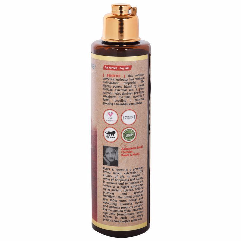 THIS MOISTURE DRENCHING ACTIVATOR HAS COOLING & ANTI-OXIDANT PROPERTIES. THE HIGHLY POTENT BLEND OF STEAM DISTILLED ESSENTIAL OILS & PLANT EXTRACTS HELPS DIMINISH FINE LINES, REHYDRATES THE SKIN, NOURISH & TONES, REVEALING A NATURALLY GLOWING & BEAUTIFUL COMPLEXION.